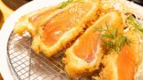 刺身用のメイプルサーモンを使用し、中はレアな状態に仕上げた贅沢なカツです。衣はカリッと、中はしっとりジューシーな食感が絶品。自家製タルタルソースを添えて、おしゃれで満足感の高い魚料理が楽しめます。