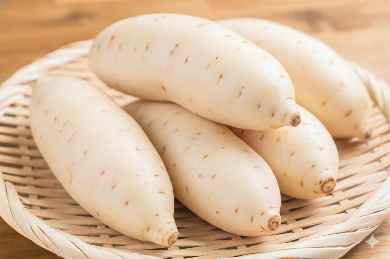 「きみまろこ」は、白い皮と鮮やかな黄色の果肉が特徴の、希少な白いさつまいもです。