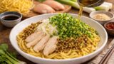 その名の通り、ねぎを主役にしたインパクト抜群の混ぜそばです。「炒めたねぎ」の甘み、「生の白髪ねぎ」の辛み、そして「仕上げの青ねぎ」の爽やかな香りを、熱々の油で一気に解き放ちます。余熱でしっとり仕上げた鶏肉が、濃厚なねぎソースと太麺によく絡む、まさにねぎ好きのための究極の一杯です。