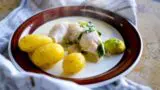 - ドレッシングを作る。ボウルにマスタード、白ワインビネガー、塩・コショウを入れ、かきまぜながらオリーブオイルを入れる。