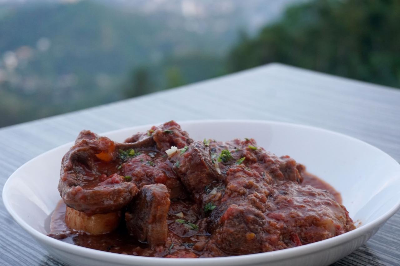 - 骨付きスネ肉からじっくり旨みが溶け出す本格煮込み