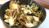 きのこをじっくり焼きつけて香ばしさを引き出し、粉チーズを炒め絡めることでカリカリ食感をプラスした一品です。にんにくと黒こしょうのパンチが効いた味わいは、おつまみにもぴったり。ビタミンDが豊富なきのこがたっぷり摂れる、ヘルシーで満足感のある副菜です。