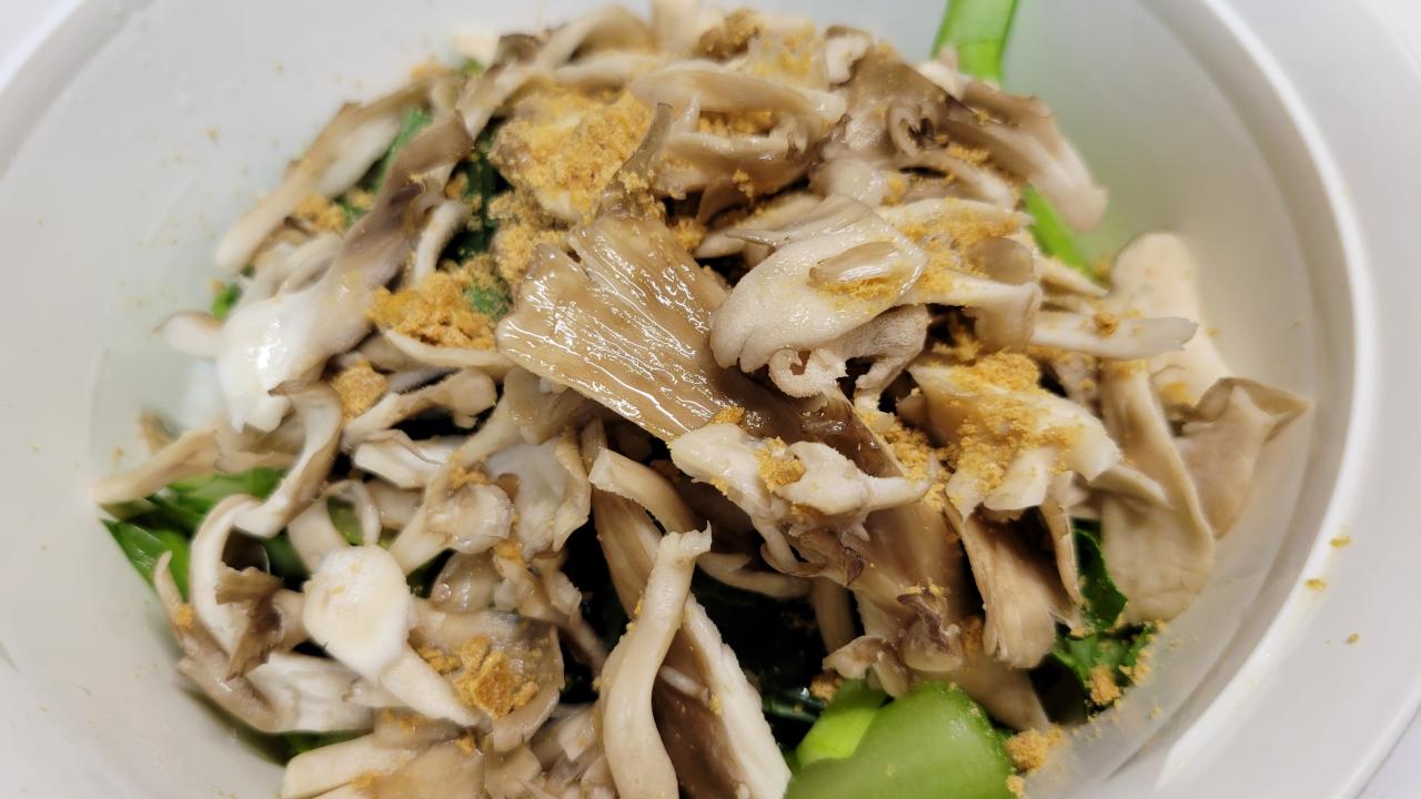 - まいたけは粉をまぶして焼くことで香ばしさアップ