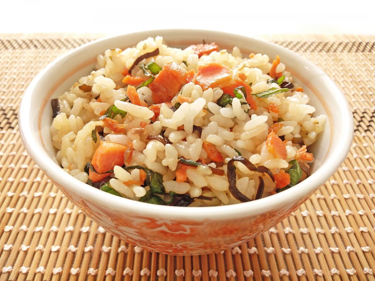 • サーモンは焼いてから炊き込むことで香ばしさが引き立つ