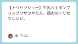 - 耐熱皿に鶏肉を移し、[タレ]を混ぜてかけ、ラップをして電子レンジ(500W)で3分加熱する。
