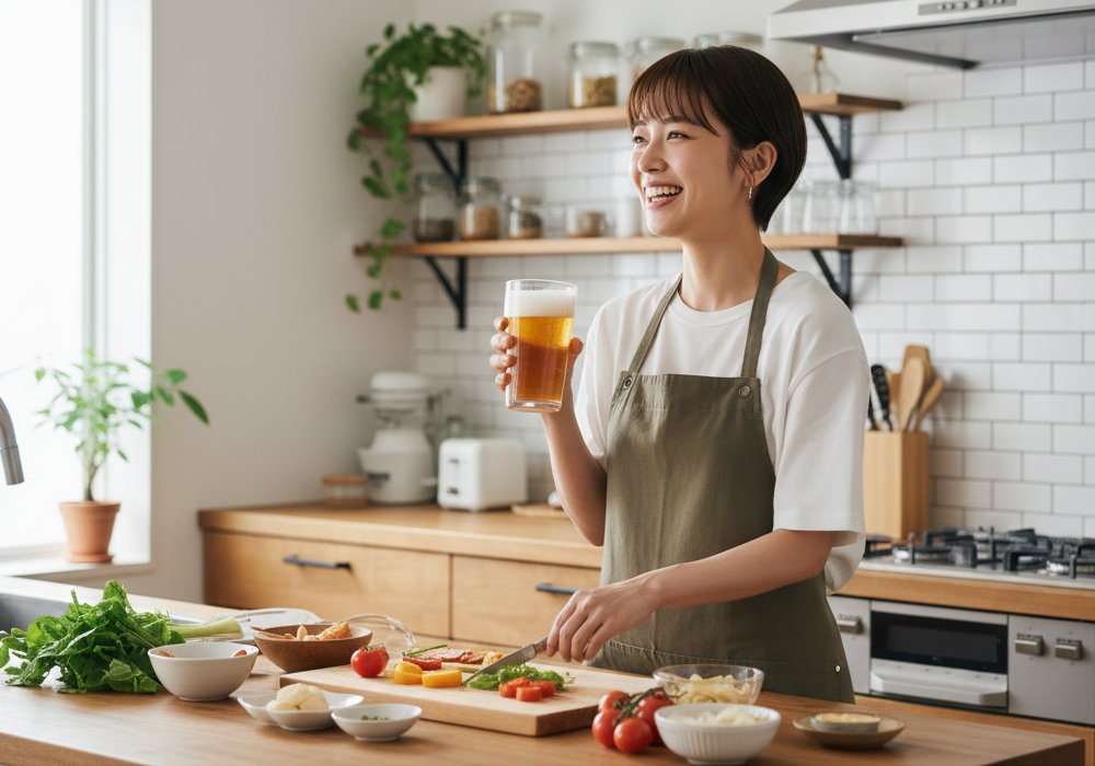 豆腐とキムチ(発酵食品)、わかめときゅうり(食物繊維)を組み合わせた、腸活効果が期待できるヘルシーなおつまみです。ごま油で炒めた香味野菜の香りが食欲をそそり、冷蔵庫にあるもので簡単に作れる時短メニューです。